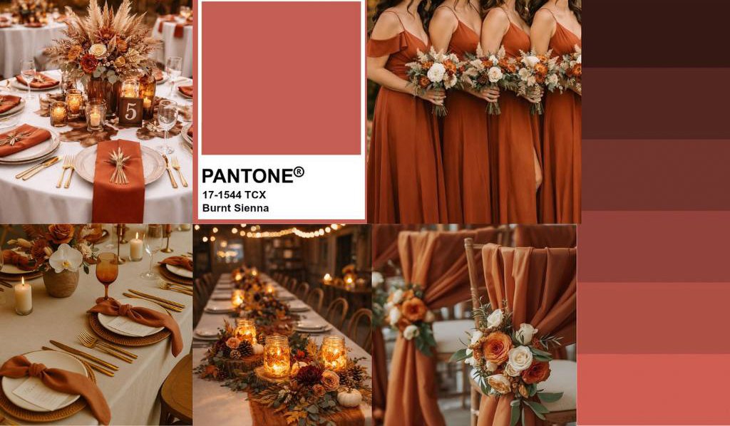 Идеально впишется этот цвет в осенние свадьбы. Можно сделать декор в уютном осеннем стиле: керамика, свечи, свадебный текстиль.