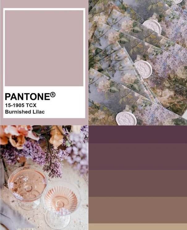 Burnished Lilac - припыленный сиреневый оттенок с легкой серебристой дымкой. Нежность с характером, отражающая кротость и чувственность невесты.