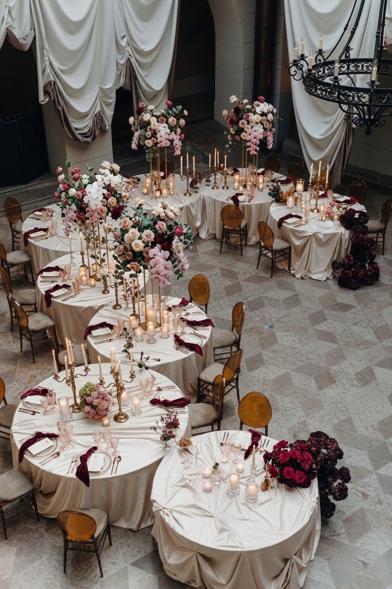 Выбирая нестандартную форму, всегда проводите «тест на доступность». Убедитесь, что официанты могут свободно проходить к каждому гостю, не перешагивая через декор, а гости могут выйти из-за стола, не задев соседа.