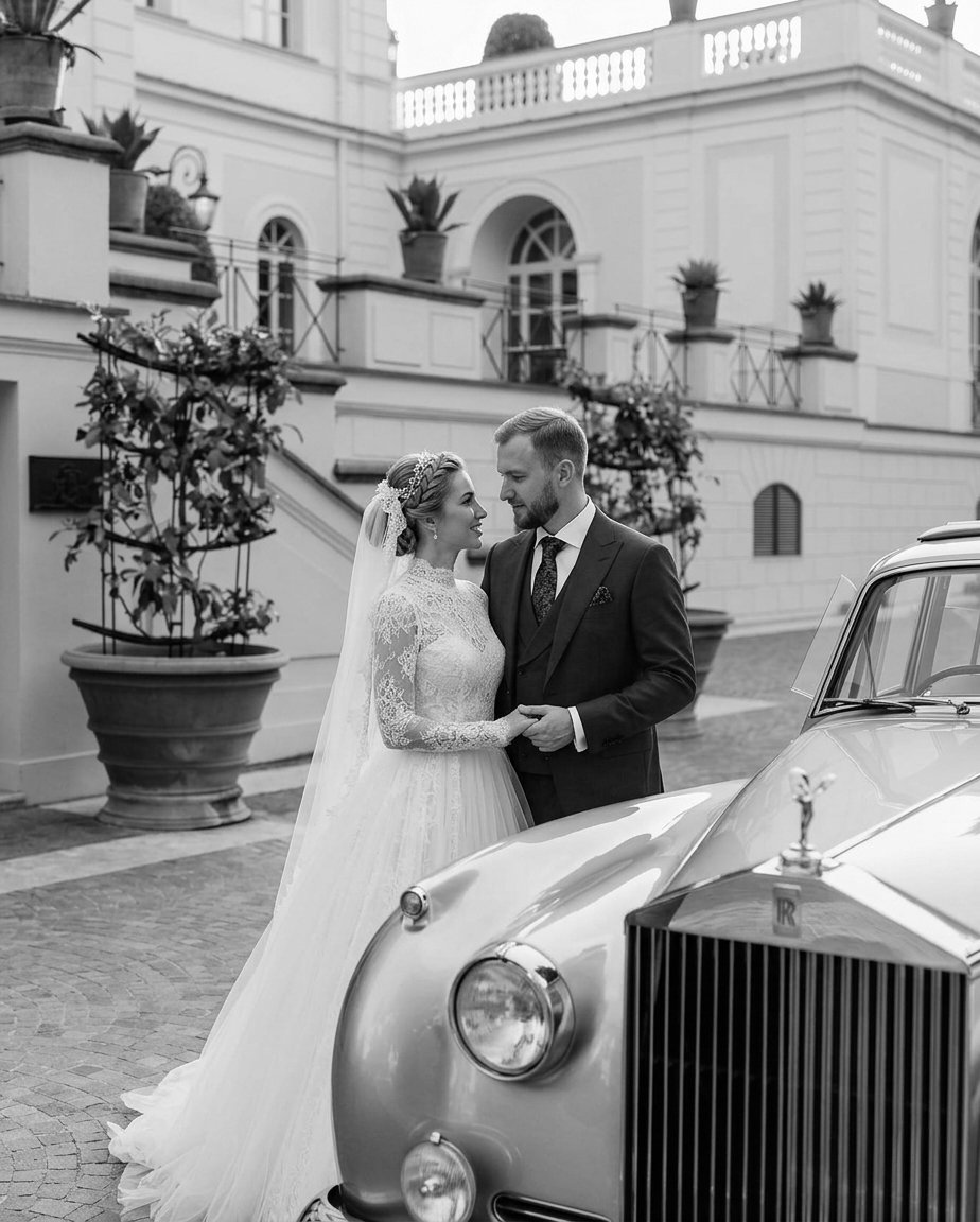Мелочь, которая спасает платье. Попросите свидетеля или координатора проверить чистоту порогов и дверных проемов машины перед вашей посадкой. Даже в самом чистом Мерседесе пороги пачкаются за пару километров, а белое платье работает как магнит для дорожной пыли в момент посадки.