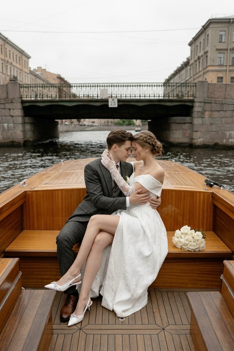 Если ваша свадьба проходит в Петербурге, грех не воспользоваться его главным преимуществом водой. Катер или теплоход могут стать как эффектным транспортом для пары, так и местом для полноценного фуршета с гостями.