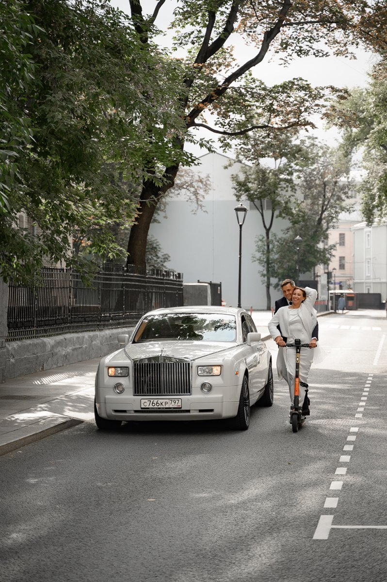 - Люкс-сегмент: Rolls-Royce или Bentley. Они создают ощущение исключительности момента и «дорогого» кадра, внутри много места для пышного платья. Кстати на заметку, если нужно уместить особенно большое платье, нет ничего лучше Mercedes V-class.