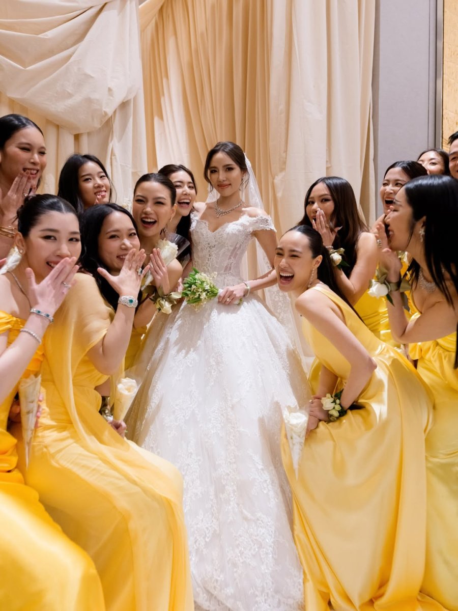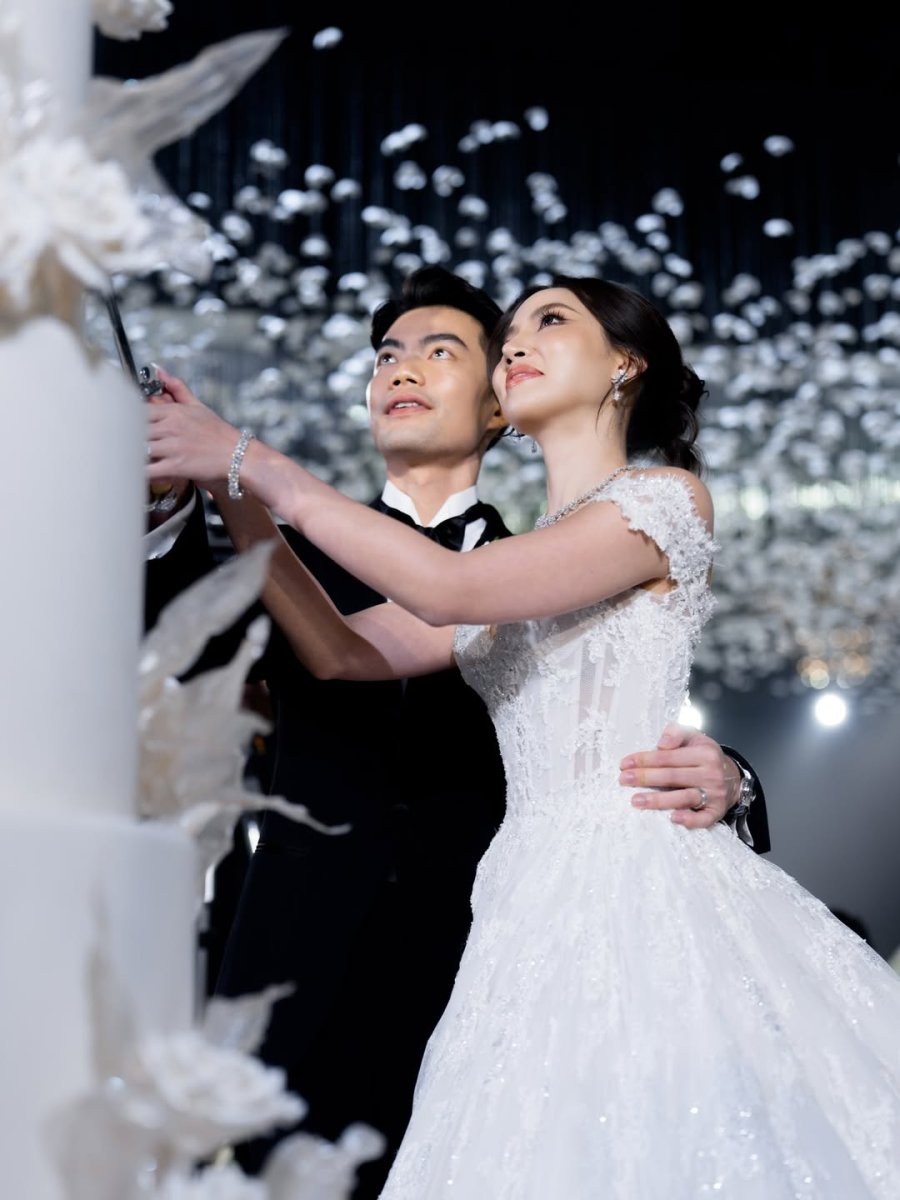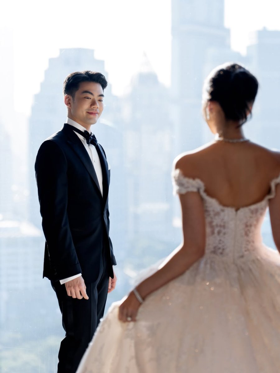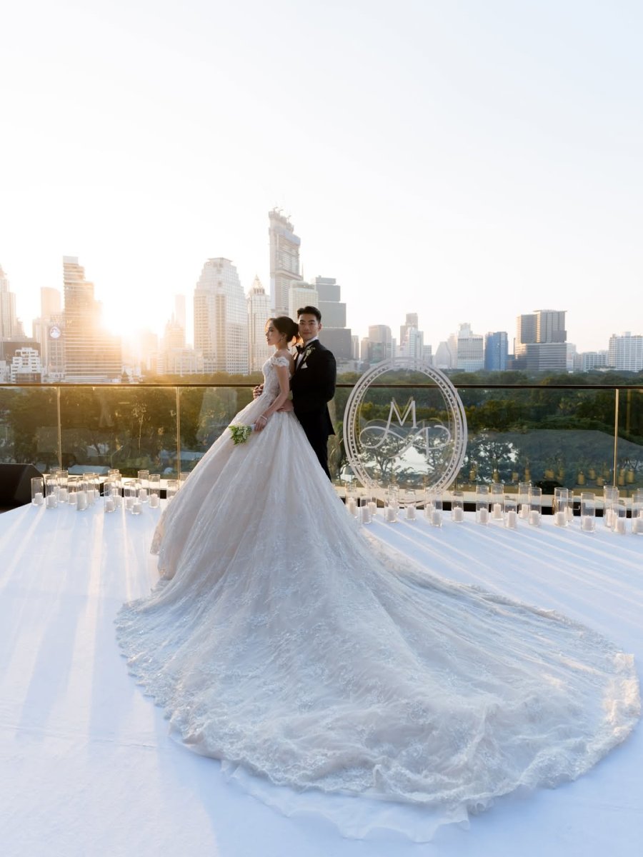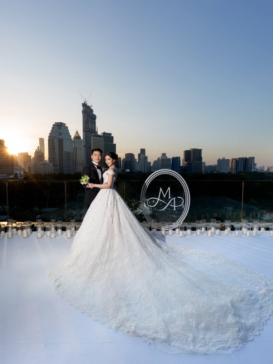Образ невесты стал центром этой вселенной. В платье от Sol and Gravite она выглядела как воплощение современной принцессы: архитектурные формы и сложный крой наряда идеально контрастировали с экзотическими интерьерами. Мастерство стилистов Surasak Studio подчеркнуло природную красоту невесты, создав безупречный образ, стойкий к влажному климату мегаполиса.