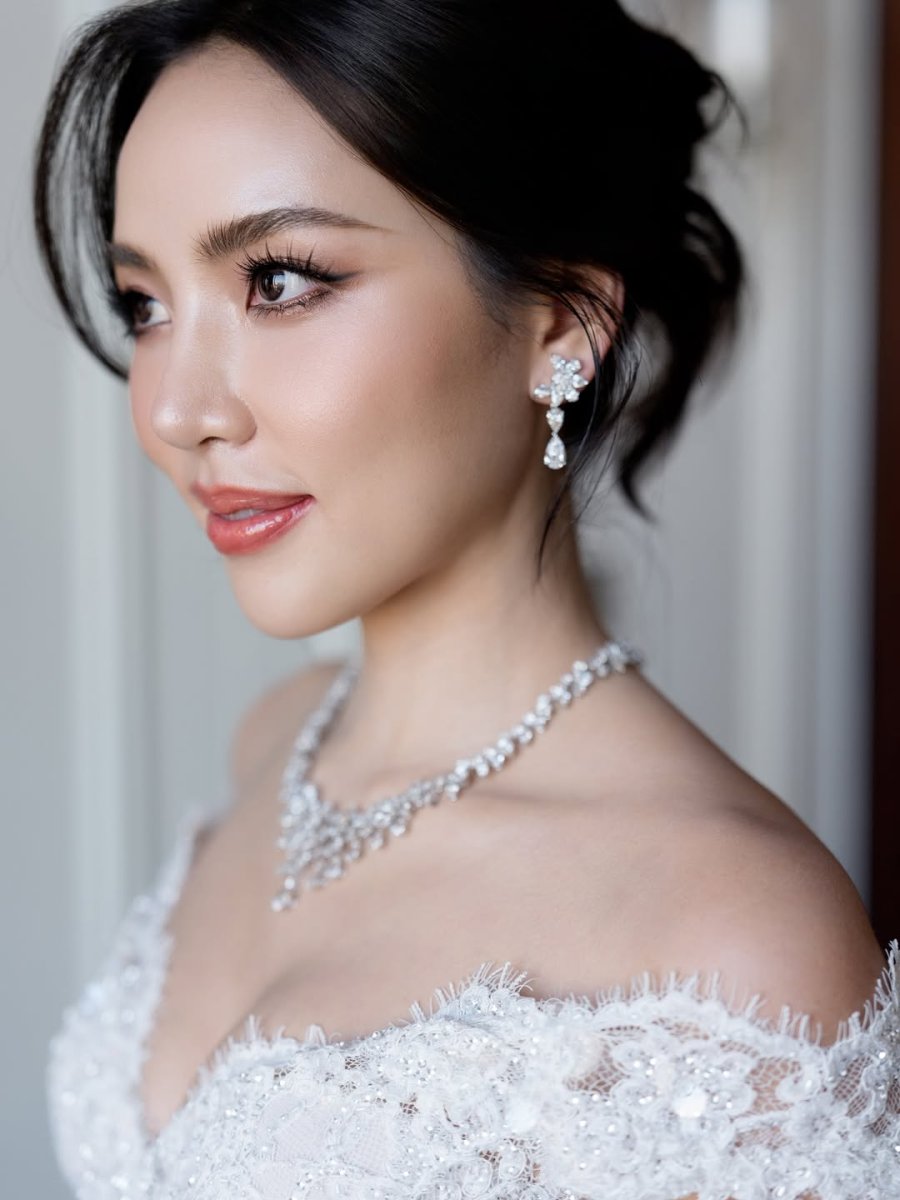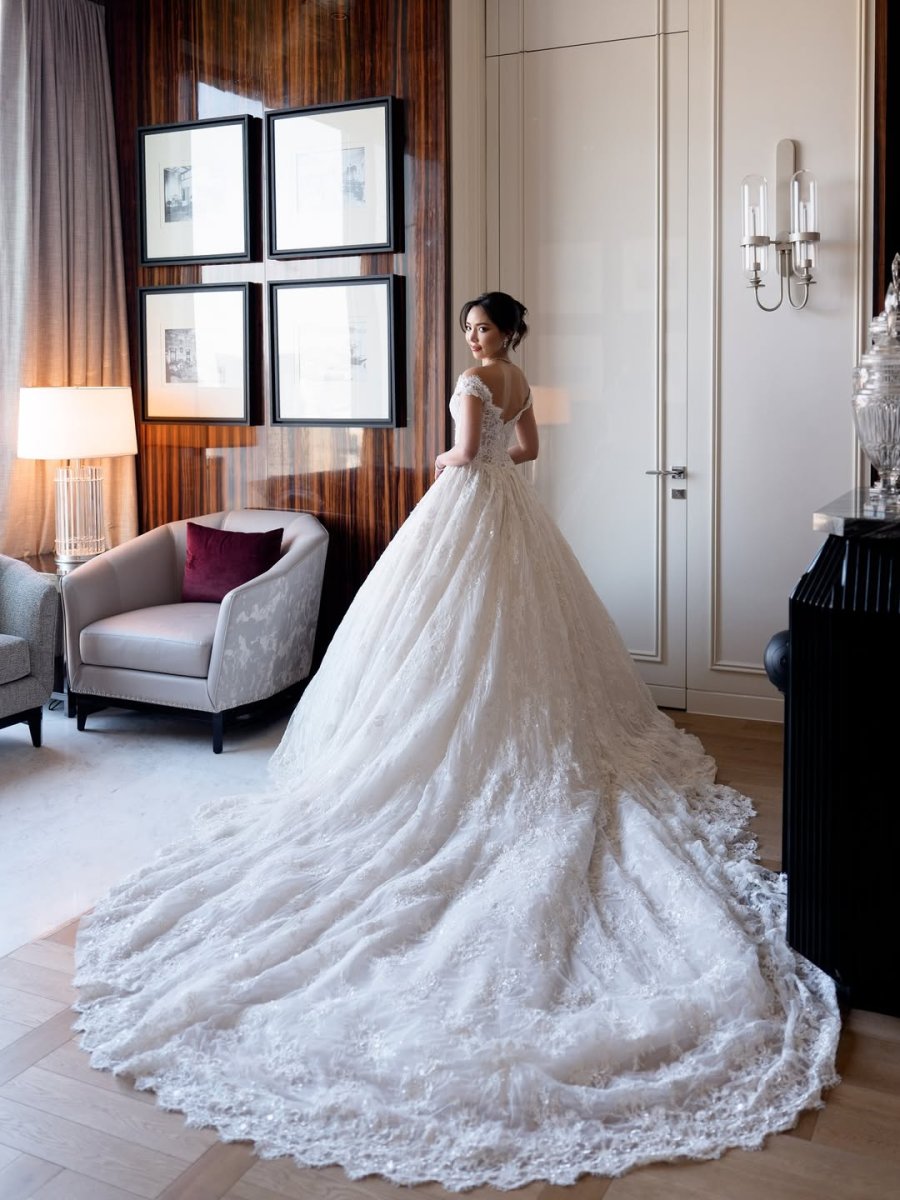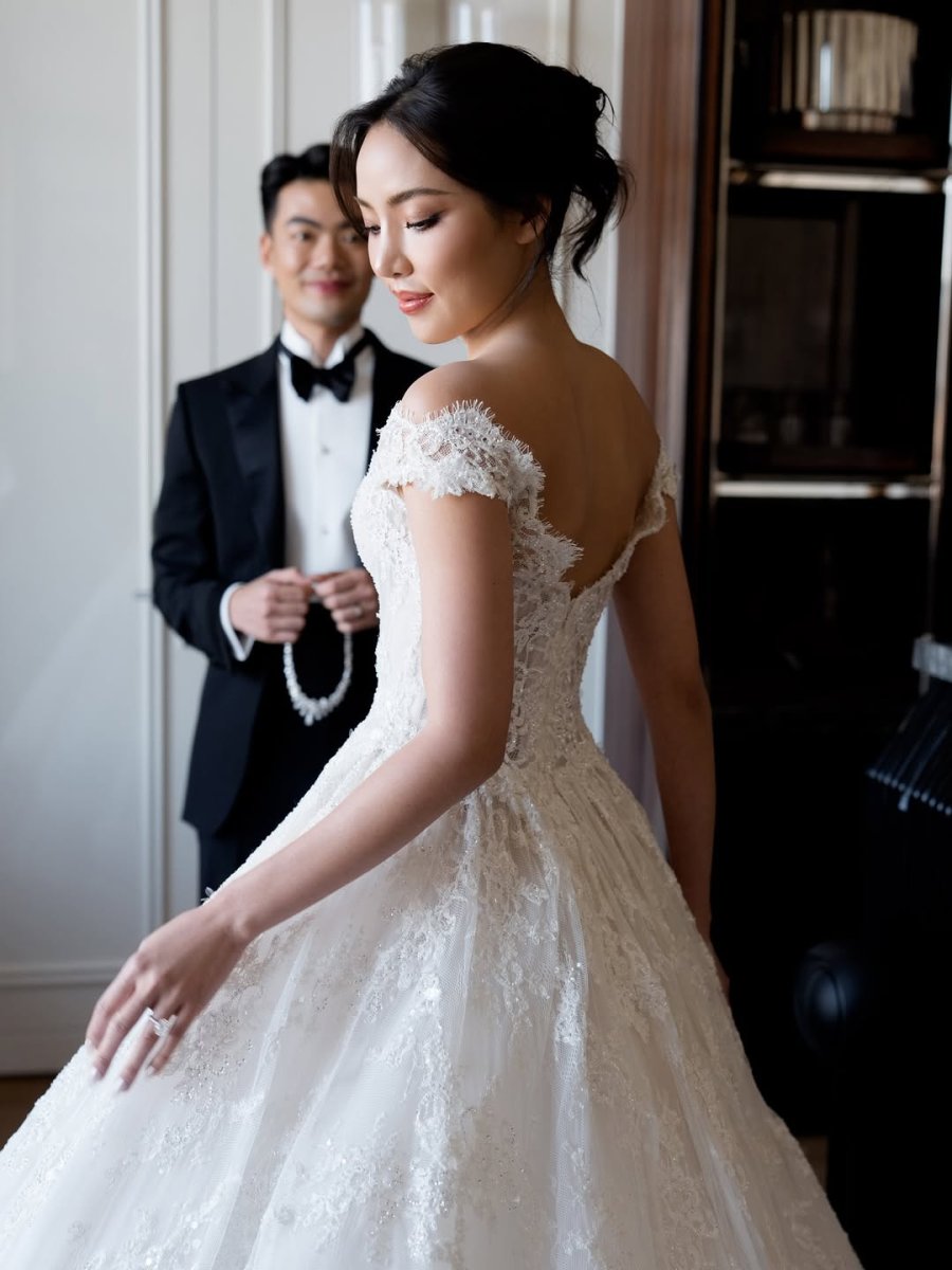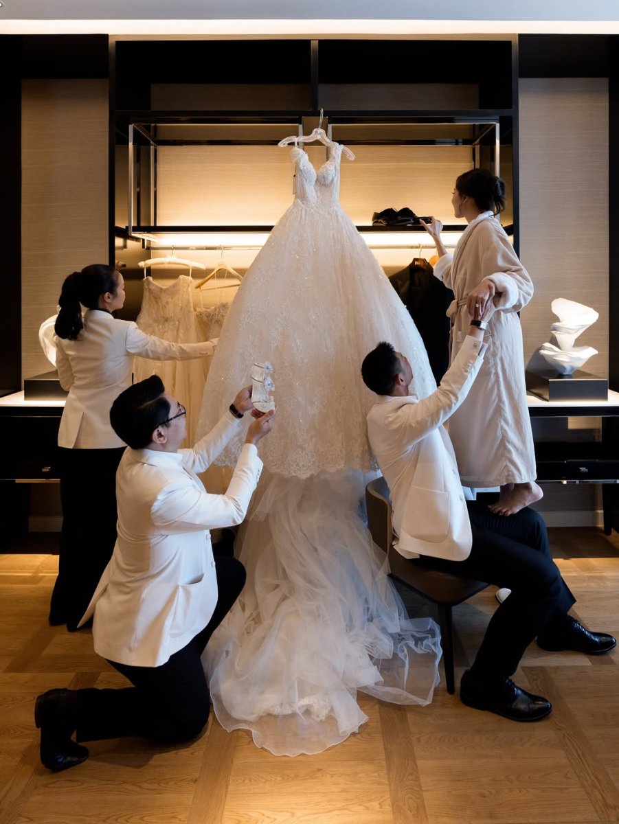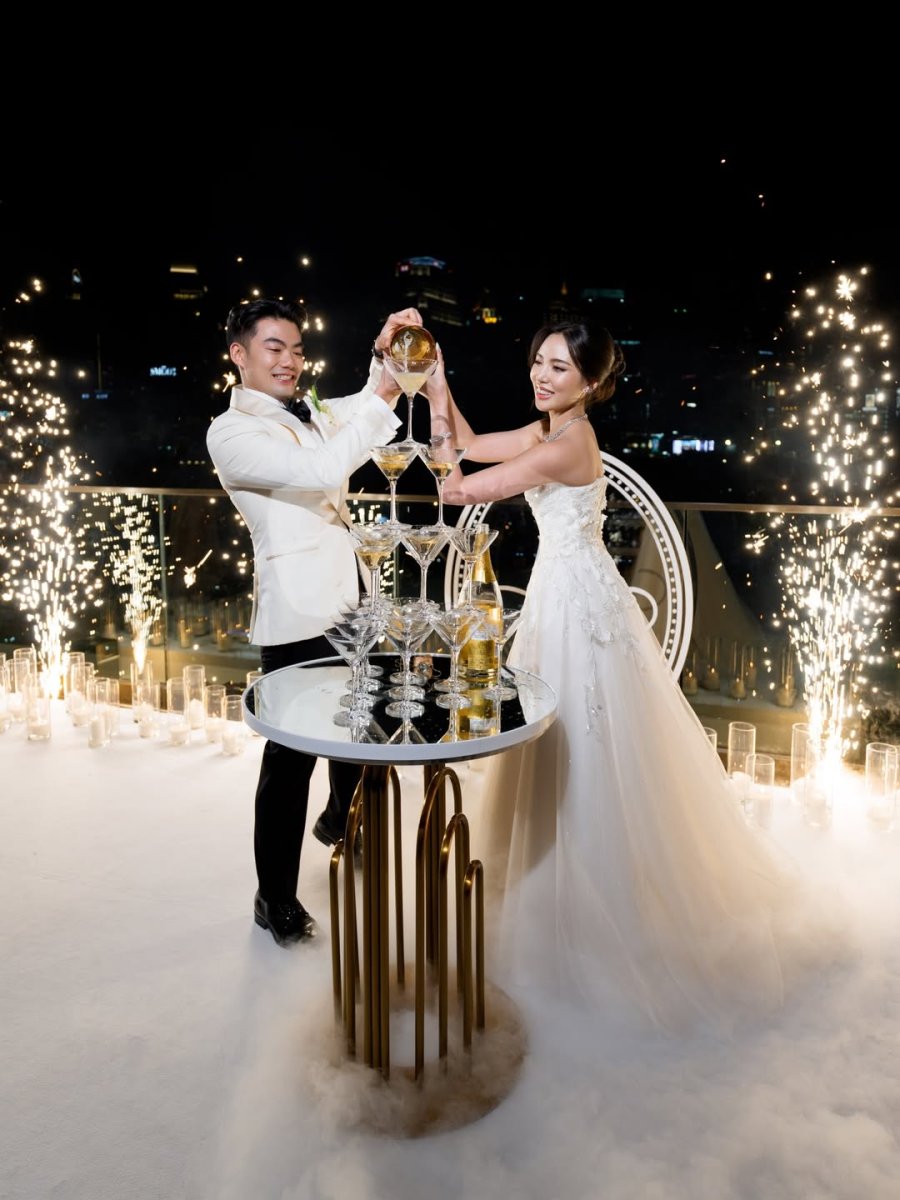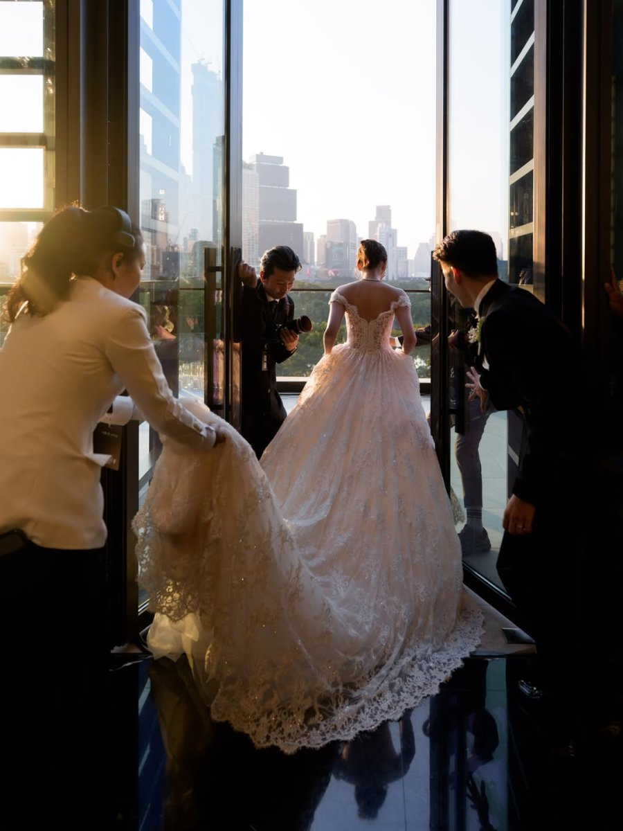 Образ невесты стал центром этой вселенной. В платье от Sol and Gravite она выглядела как воплощение современной принцессы: архитектурные формы и сложный крой наряда идеально контрастировали с экзотическими интерьерами. Мастерство стилистов Surasak Studio подчеркнуло природную красоту невесты, создав безупречный образ, стойкий к влажному климату мегаполиса.
