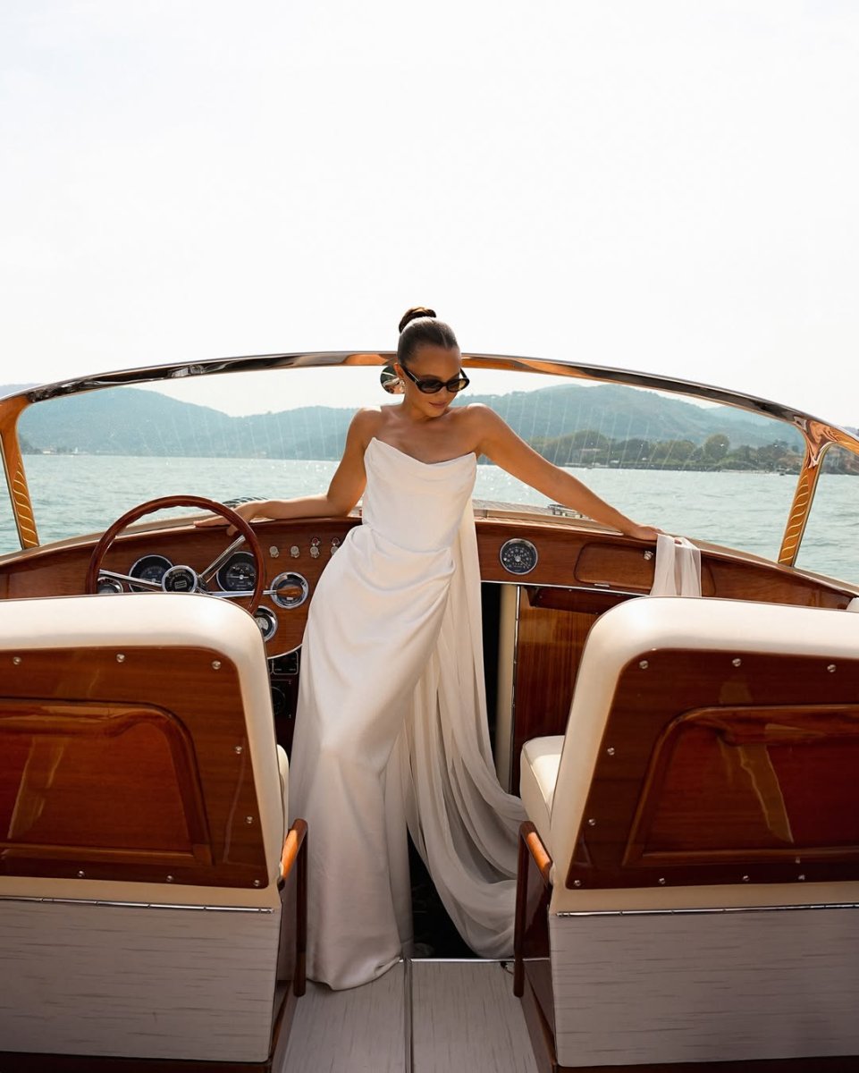 летящая ткань выглядела эффектно в каждом движении. Образ дополнил изысканный
